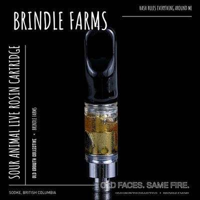 When purchasing Brindle Farms’ Sour Animal Live Rosin Cartridges, you can expect to receive a light golden coloured, clear, uniform, and stable solventless hash oil inside.