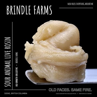 When purchasing Brindle Farms’ Sour Animal Live Rosin, you can expect to receive hashish of near white colour embellished by gold hues, with a gelatinous consistency, maintaining a ‘wet’ feel due to high terpene content.